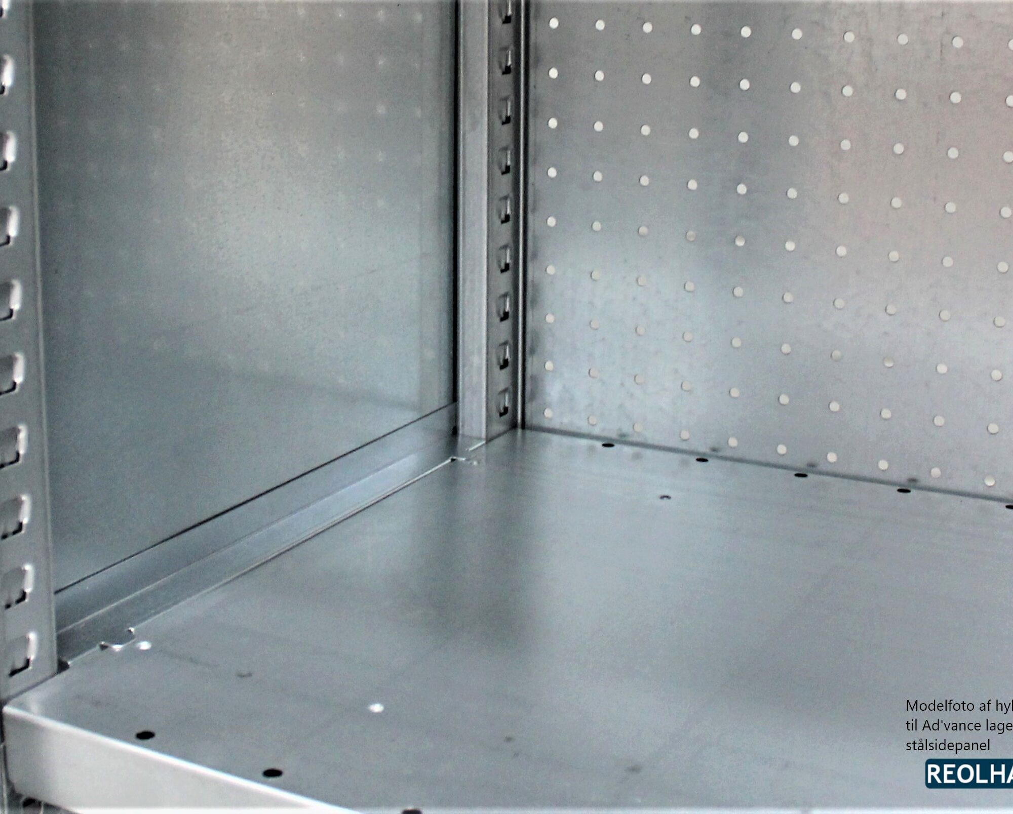 Endestykket bruges til udfyld i forlængelse af hylde til lagerreol med stålplade sidepanel/skillevæg mellem 2 hylder.