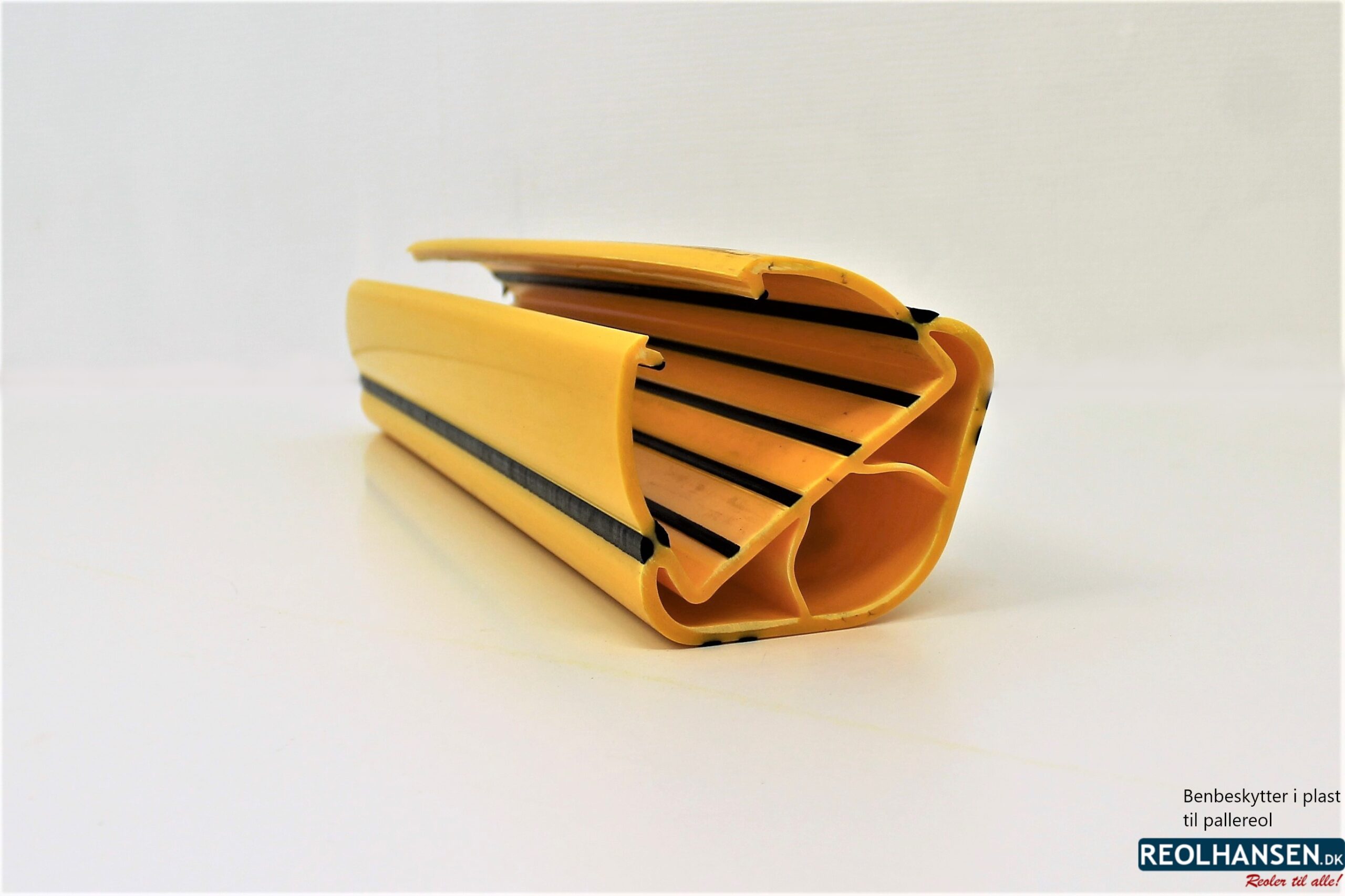 Benbeskytter i plast til beskyttelse af pallereoler.