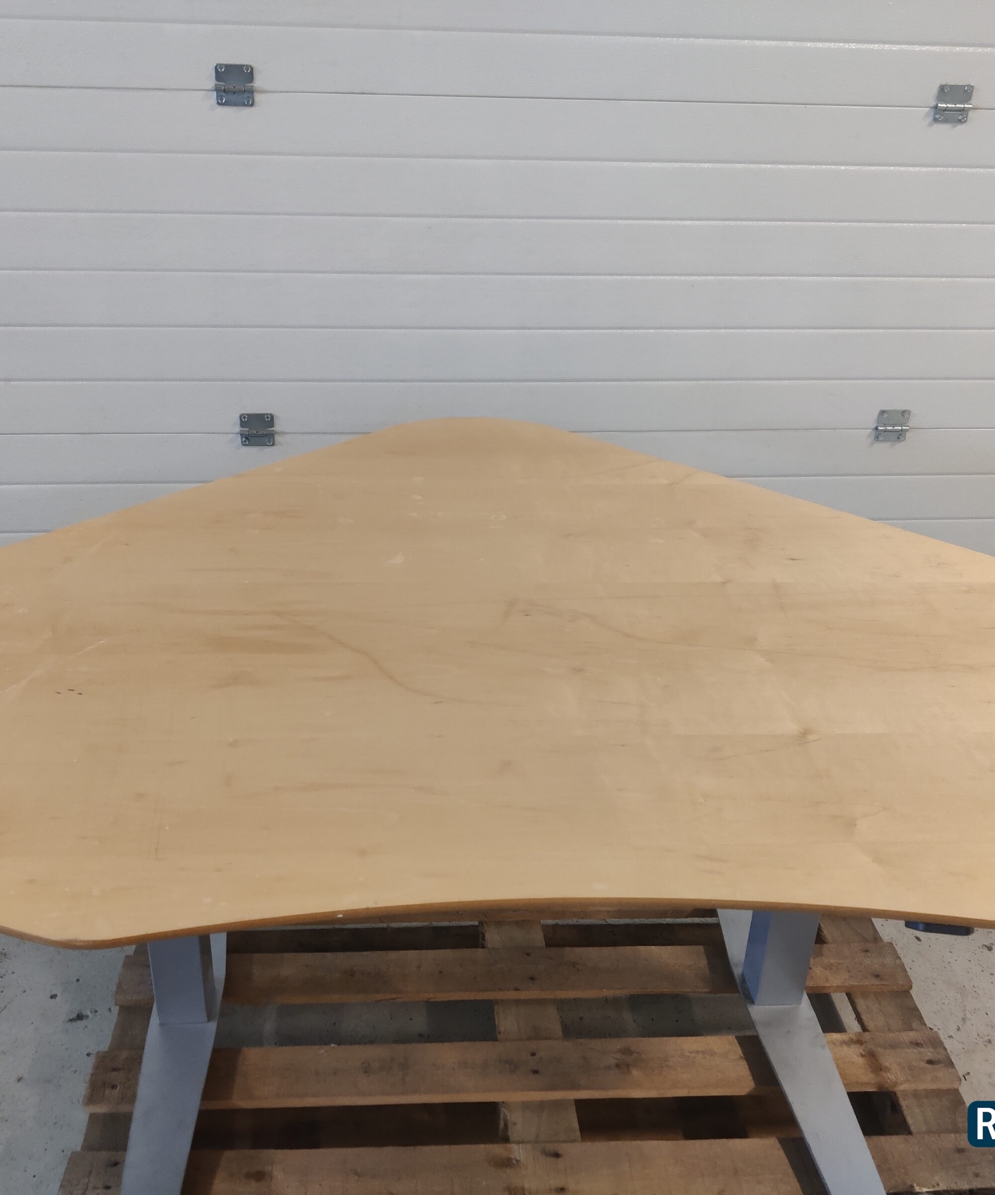 Bordet er brugt og har lidt ridser og mærker på bordpladen, men fungere som det skal.