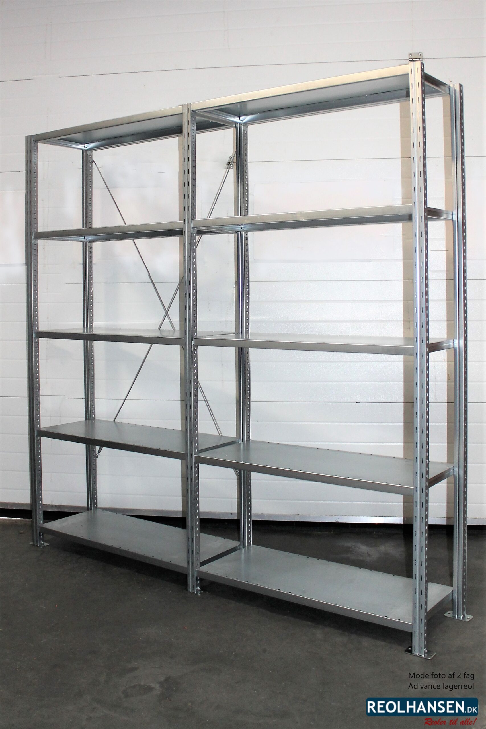 Pregalvaniseret stålreol til indendørs brug.