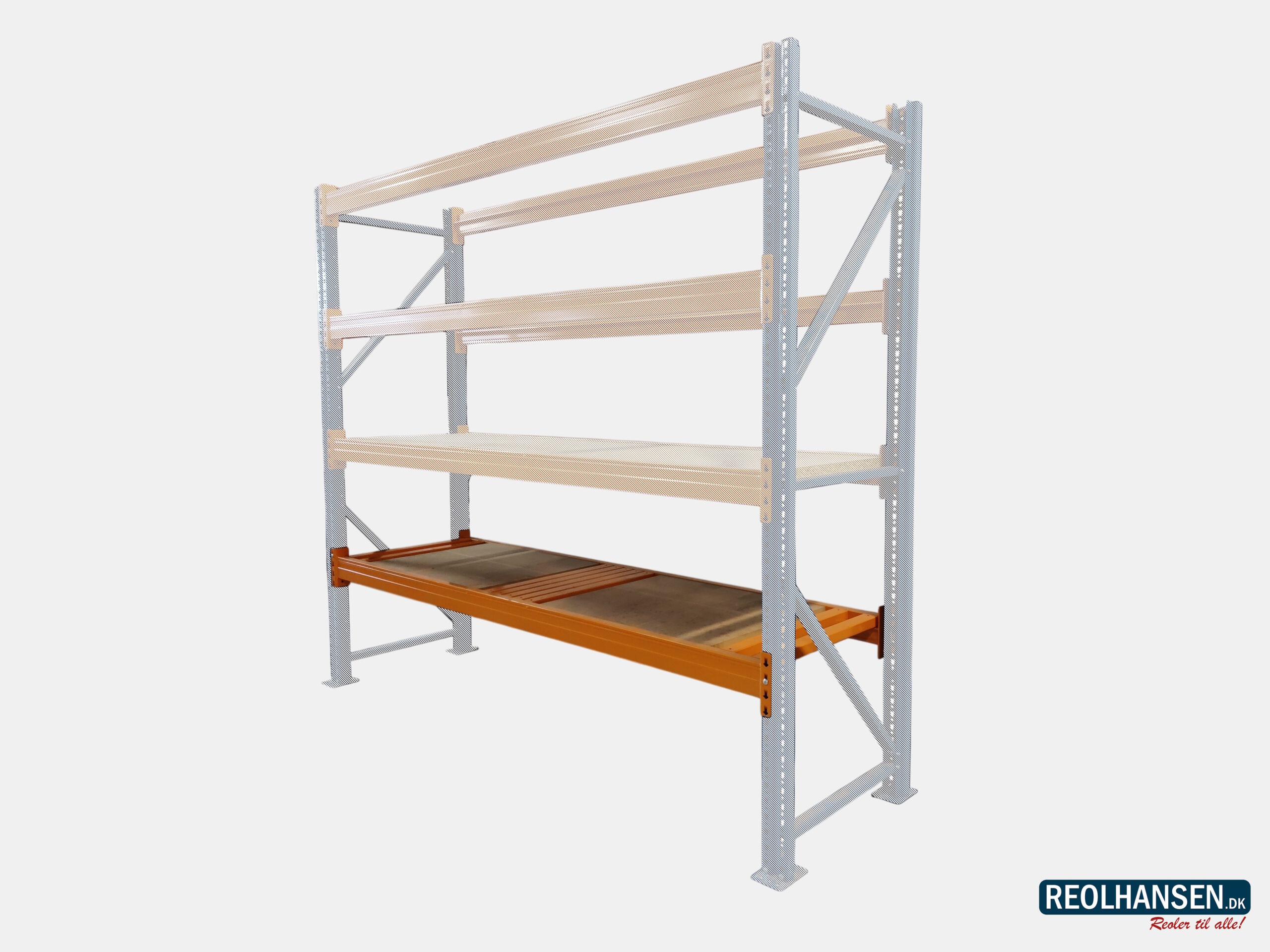 Enormt kraftig letpallereol med belastning på 2000 kg pr. hylde. Dermed velegnet til tung last.