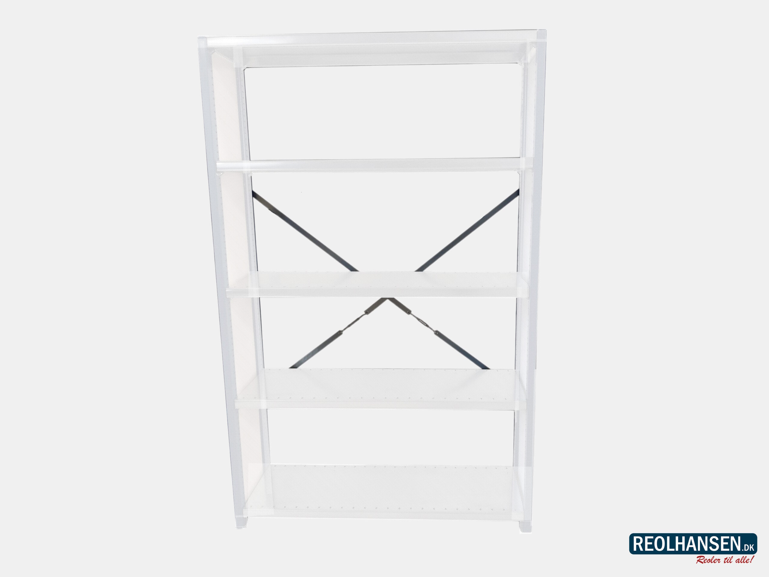 Rygkryds bruges til at afstive reolens bagside for at holde reolen stabil og benene lodret.