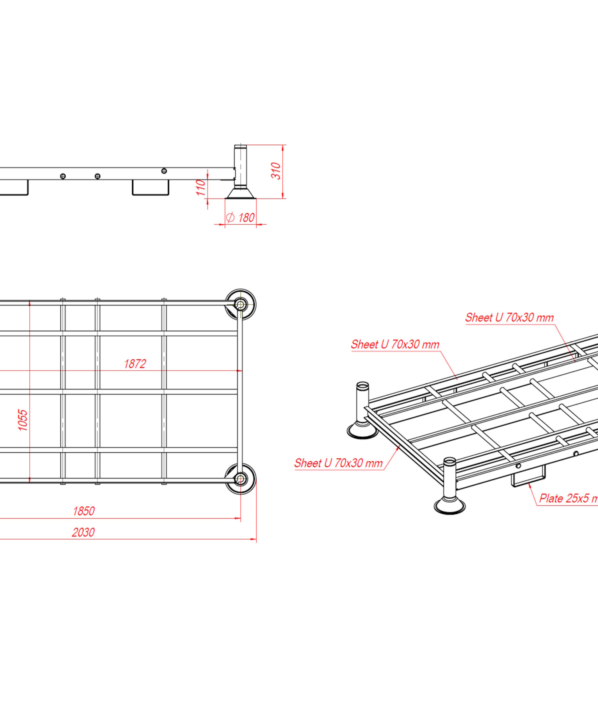 Stabelbar transportramme på 2030x1185mm inkl. 4 rør (udvendigt mål)