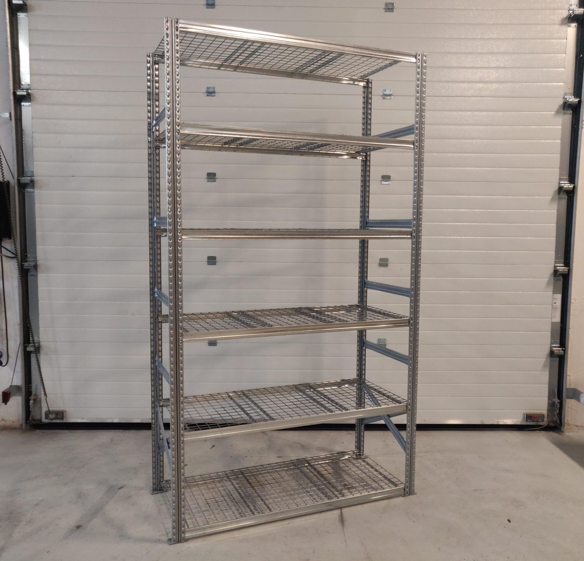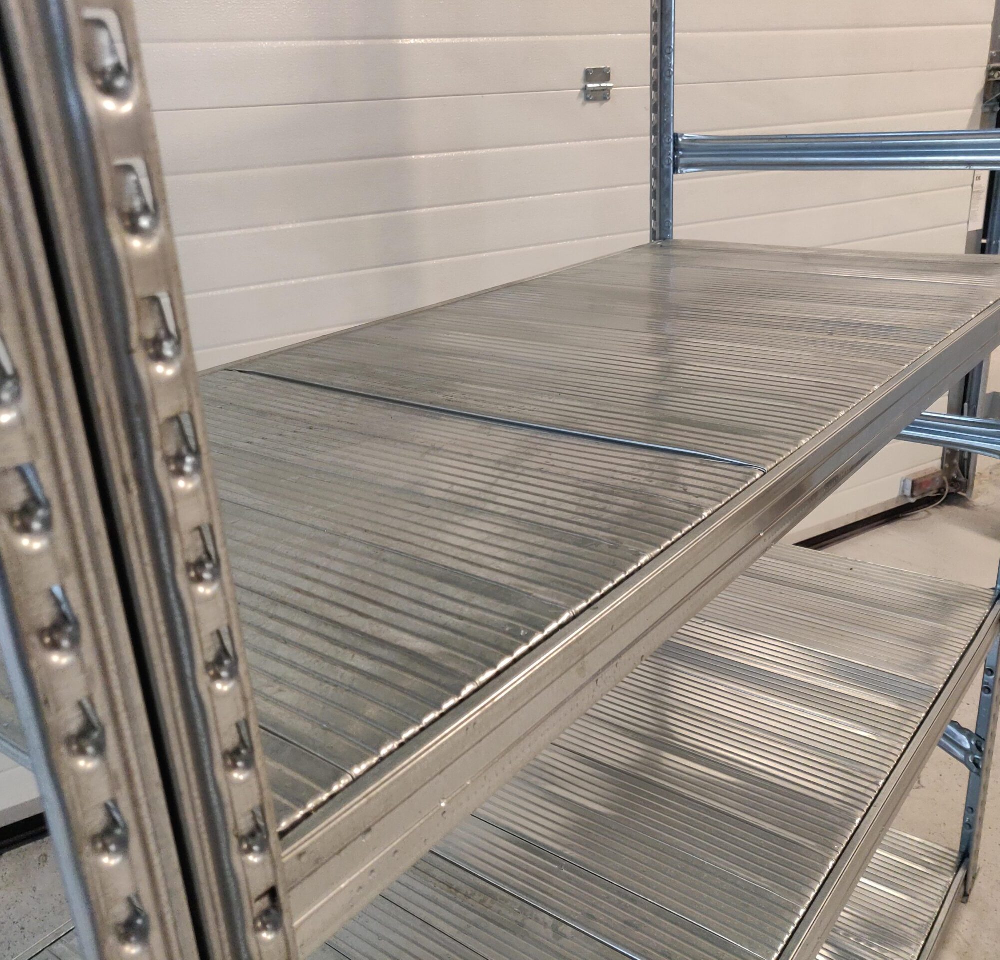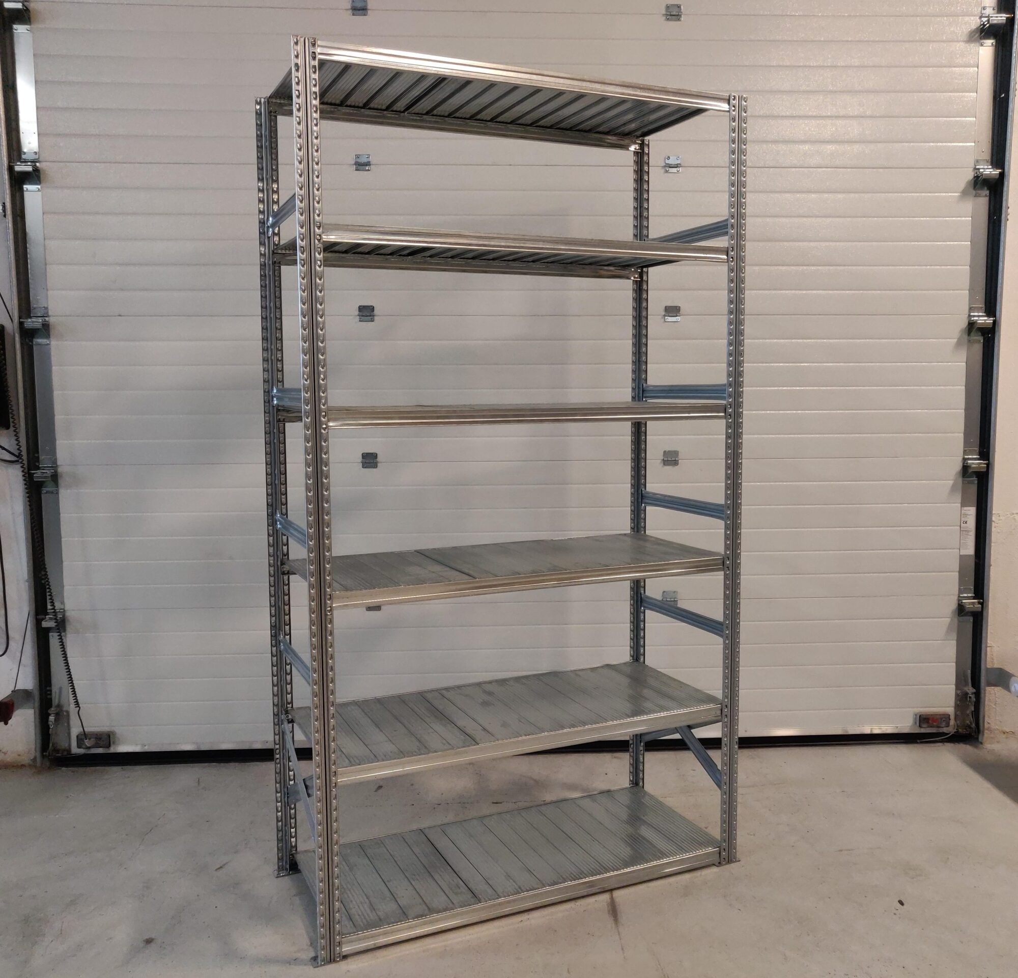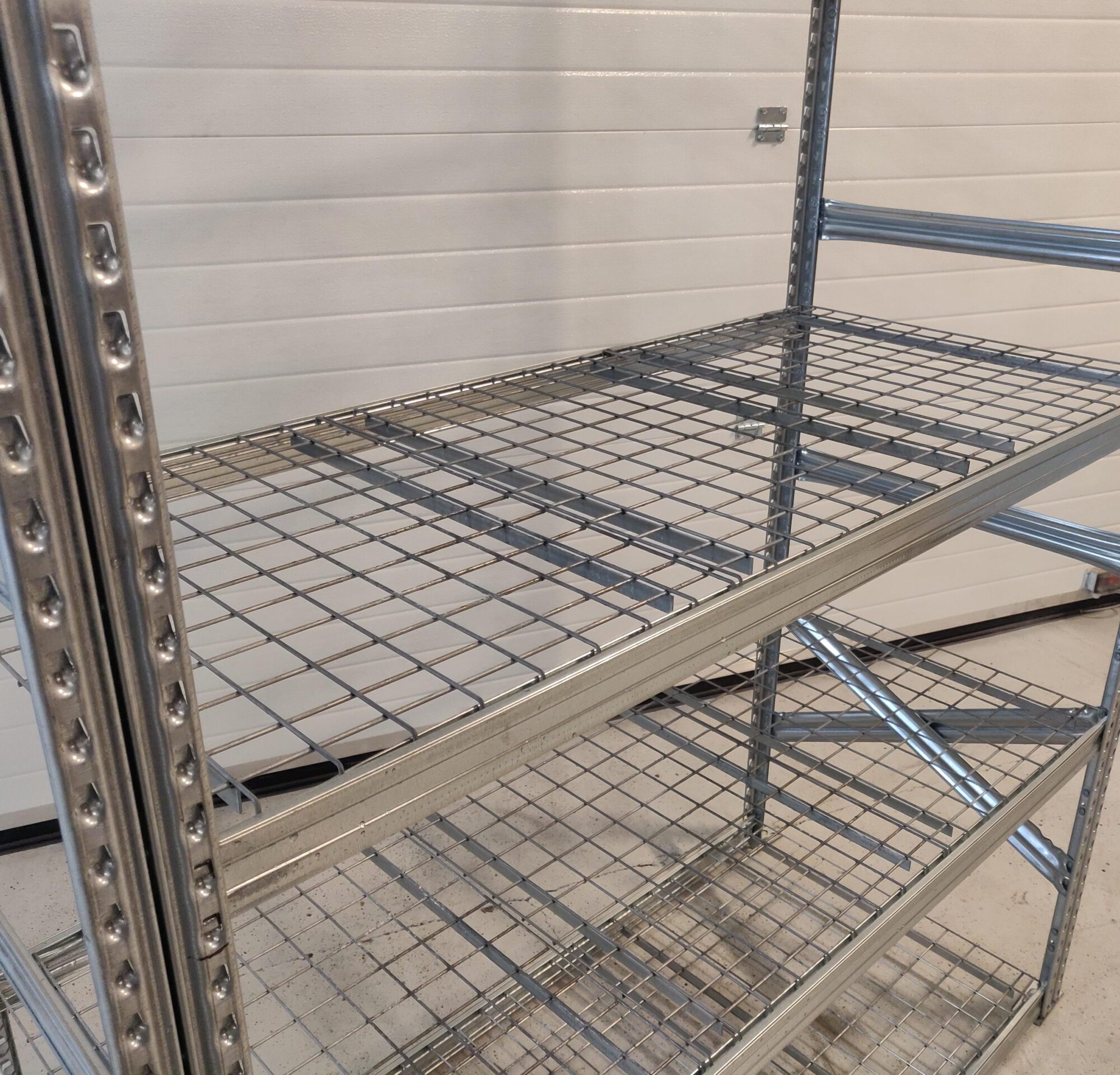 Brugt Supersnild følgefag med 6 hylder i pregalvaniseret stål til indendørs brug. En god kraftig kvalitet.