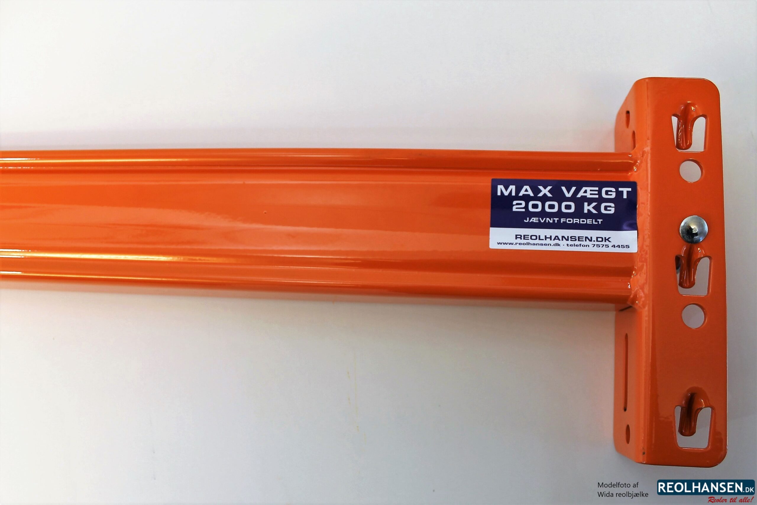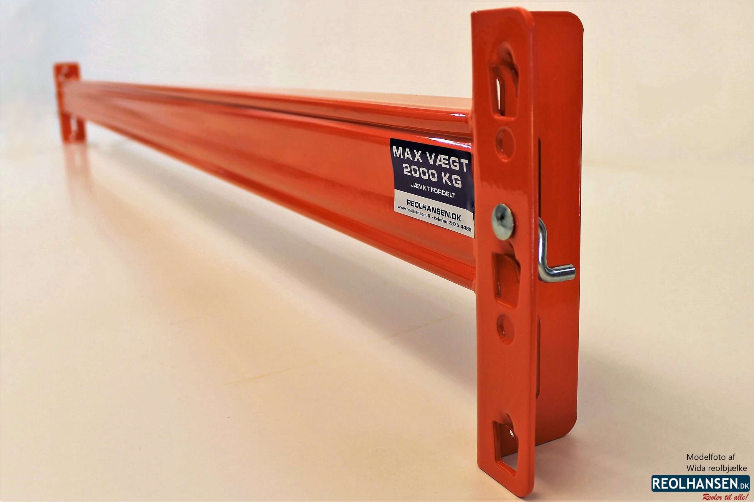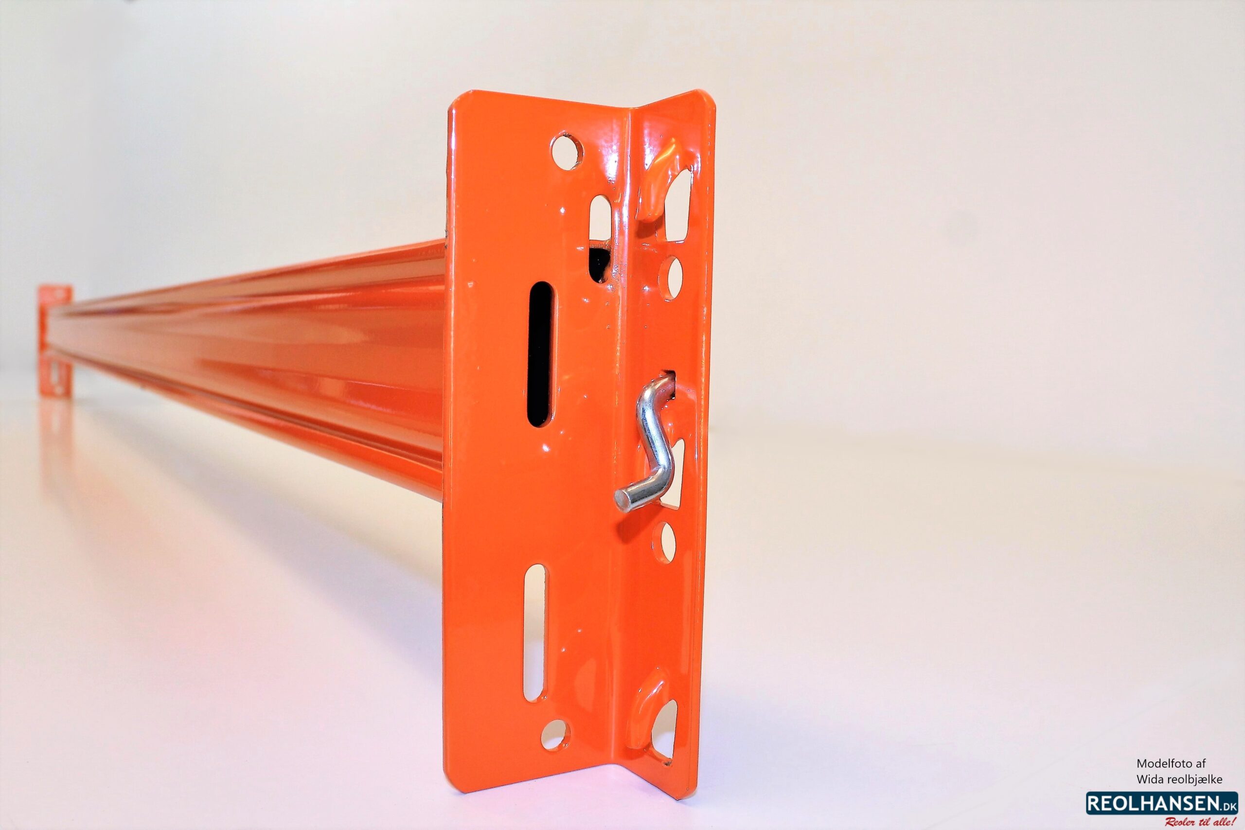Vi lever bjælker fra 1200mm og op til 5000mm. Kan sammen med Reolstigen leveres i den dybde der passer til jeres paller. Dybde 800mm til side-håndterede-paller, 500mm til halv-paller eller måske som en trebenet stige til en pladereol med dybde 1900mm Det unikt udformede hulmønster gør det nemt at styre bjælkens gribere på plads, Når bjælken sænkes ned glider griberne automatisk i lås og derved opnår reolen stor stabilitet, nem montage af låsesplitter sikre et sikkerheden er i orden. På grund af de fine tolerancer kiler bjælkerne ikke fast og det er nemt at løfte en bjælke op for at genplacere, hvis sine paller ændre højde eller hvis du skal flytte reolen.